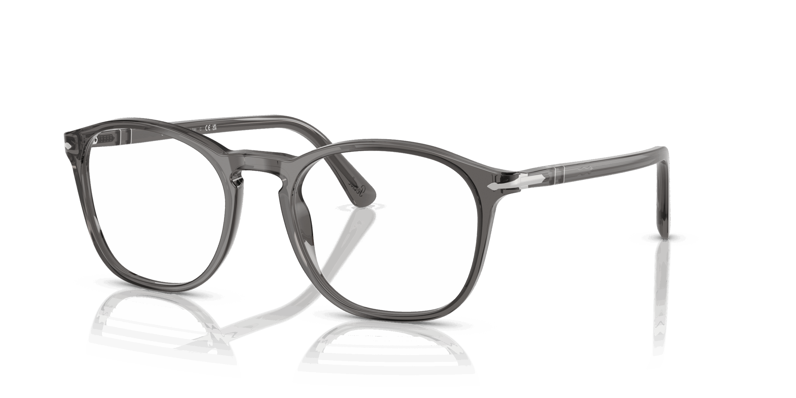 De Persol PO3007VM 24 is een elegante leesbril die Italiaans vakmanschap combineert met een tijdloos ontwerp. Dit montuur heeft een klassieke ronde vorm en is vervaardigd uit hoogwaardig acetaat in de kleur 'Transparant Grey', wat zorgt voor zowel duurzaamheid als een verfijnde uitstraling.