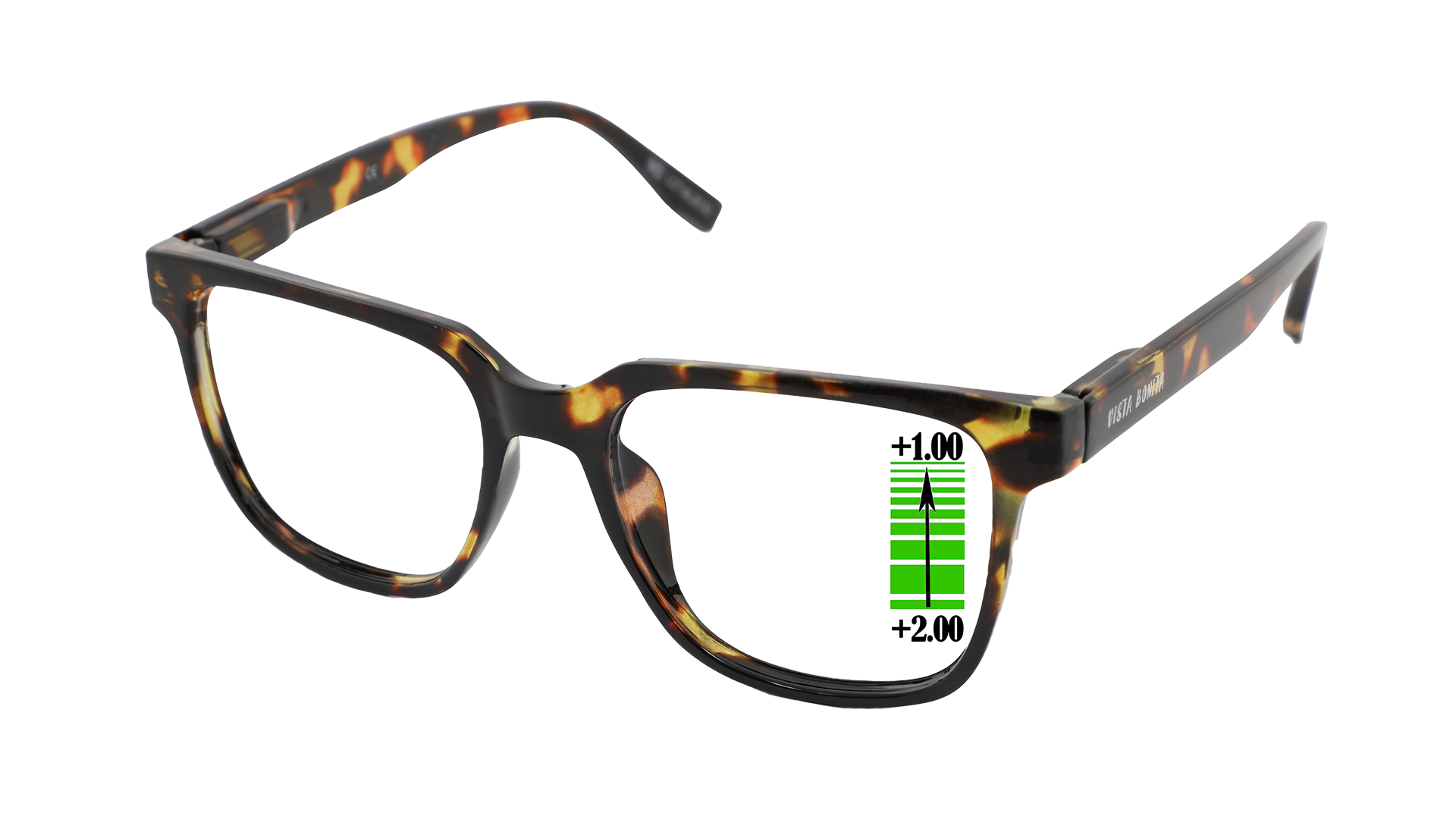 De CUBO multifocale leesbril combineert verschillende plus (+)sterktes in één glas waarbij de sterkte progressief oploopt naar de gewenste leessterkte. De bovensterkte is doorgaans de helft van de leessterkte. Zo heeft een +2.00 CUBO