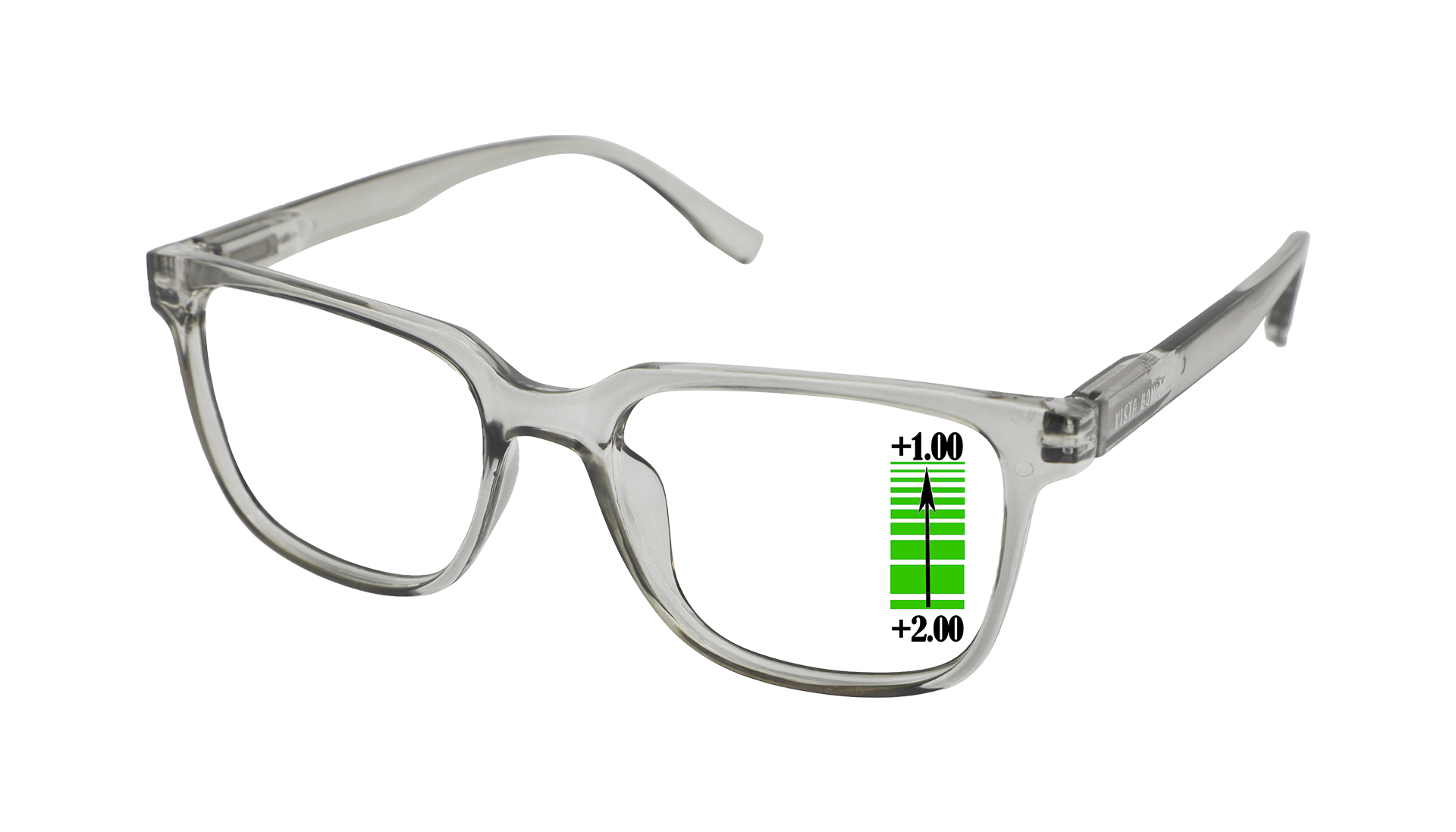 De CUBO multifocale leesbril combineert verschillende plus (+)sterktes in één glas waarbij de sterkte progressief oploopt naar de gewenste leessterkte. De bovensterkte is doorgaans de helft van de leessterkte. Zo heeft een +2.00 CUBO