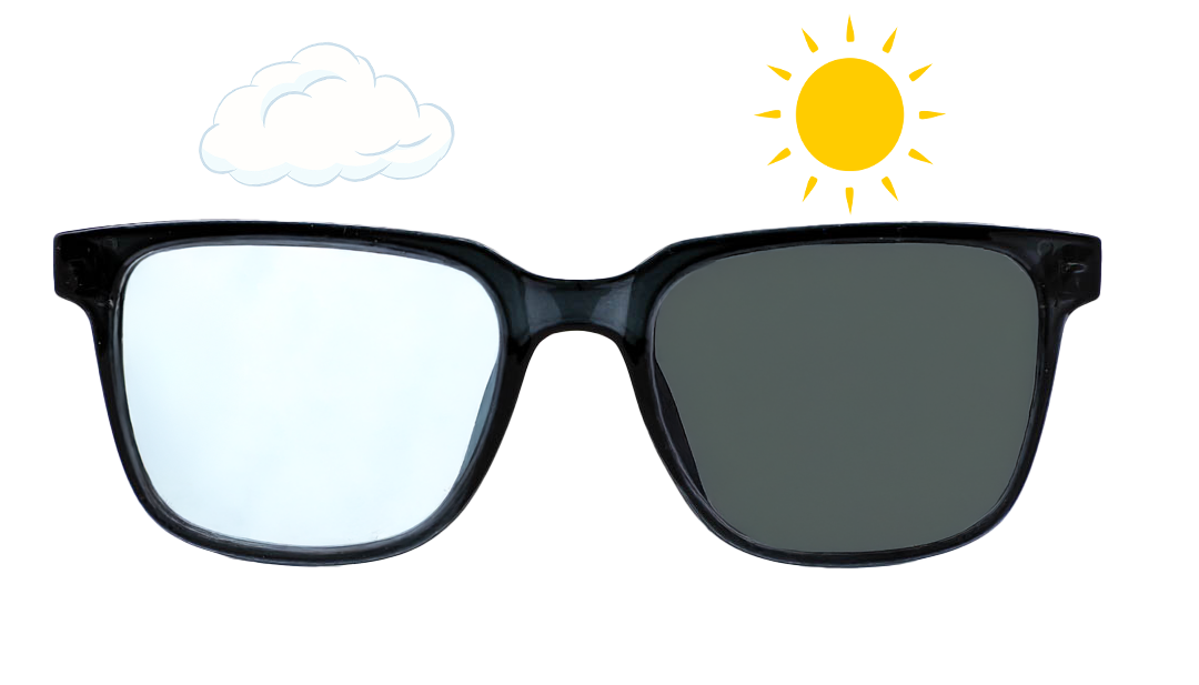 De Vista Bonita Cubo leesbril met photochromische glazen, die automatisch van kleur veranderen bij blootstelling aan UV-licht. Deze glazen passen zich aan de lichtomstandigheden aan: binnen blijven ze helder, en buiten kleuren ze donkerder om je ogen te beschermen tegen fel zonlicht. Zo hoef je niet steeds van bril te wisselen wanneer je van binnen naar buiten gaat.