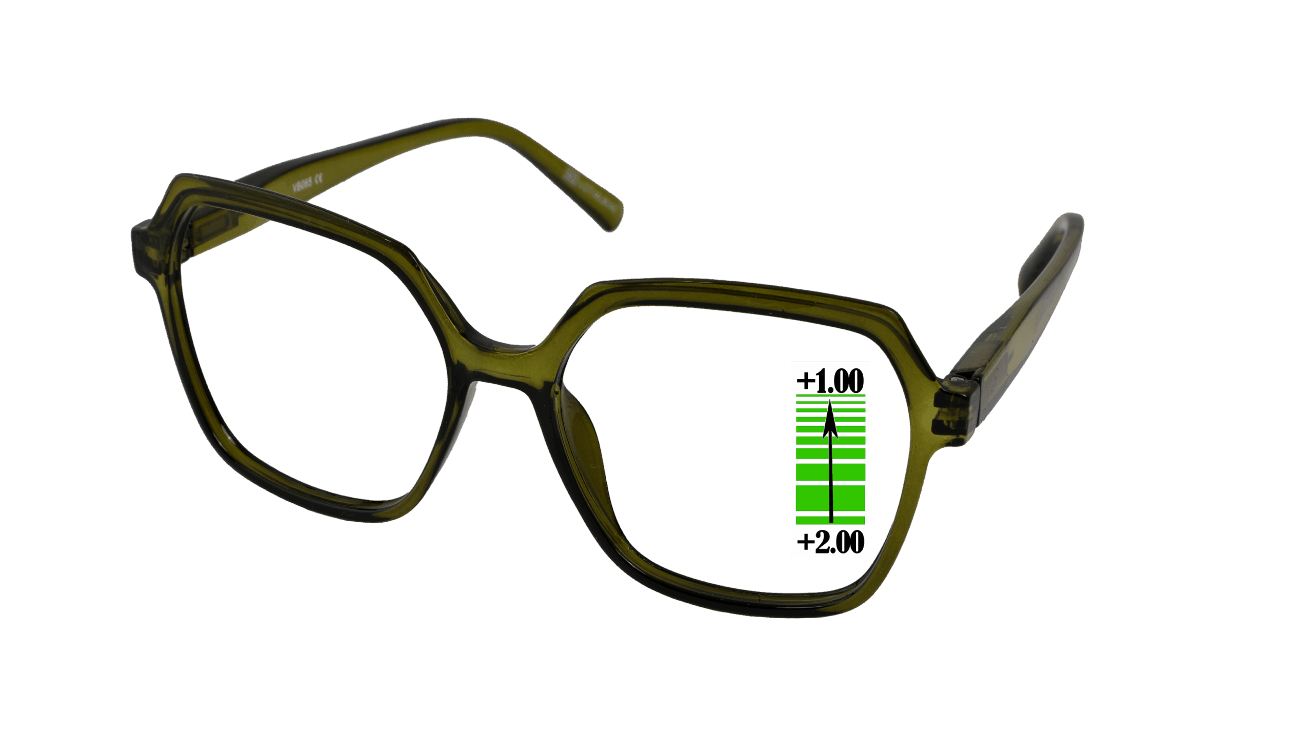 De MIRA multifocale leesbril combineert verschillende plussterktes in één glas, waarbij de sterkte geleidelijk