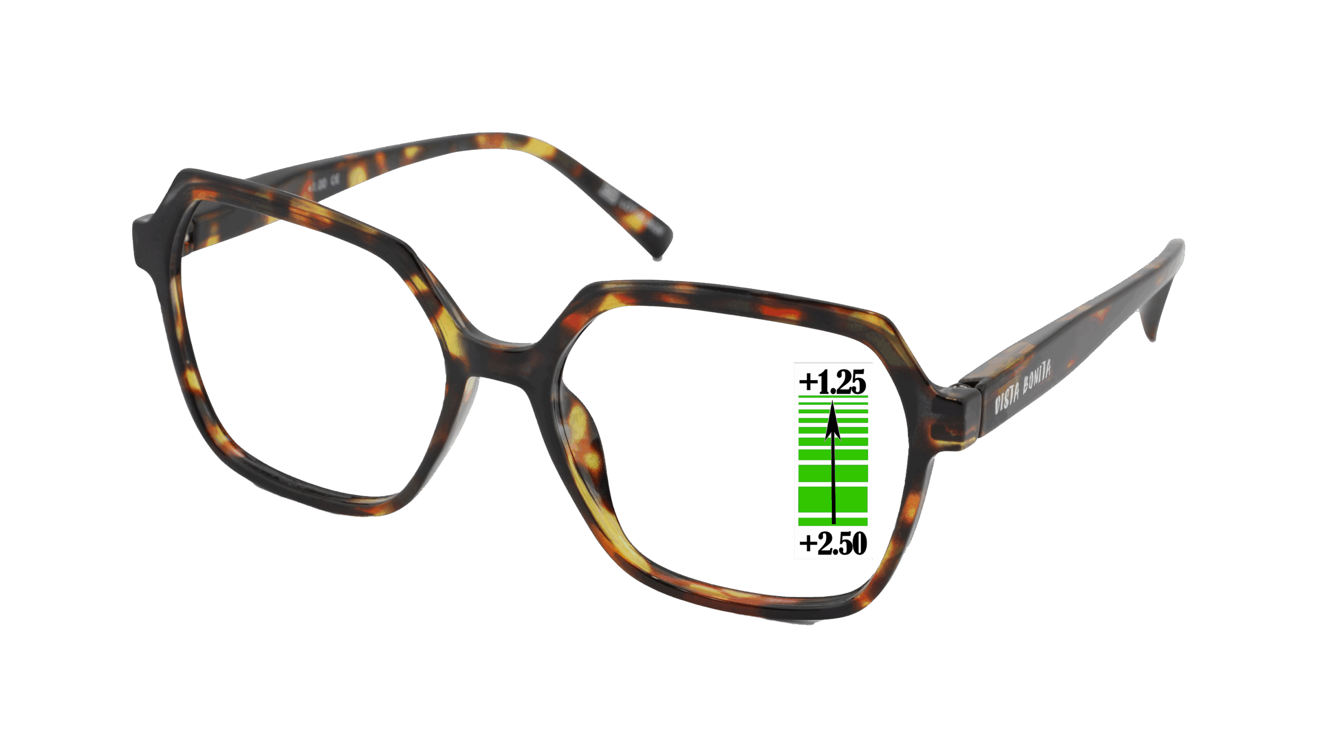 De MIRA multifocale leesbril combineert verschillende plussterktes in één glas, waarbij de sterkte geleidelijk