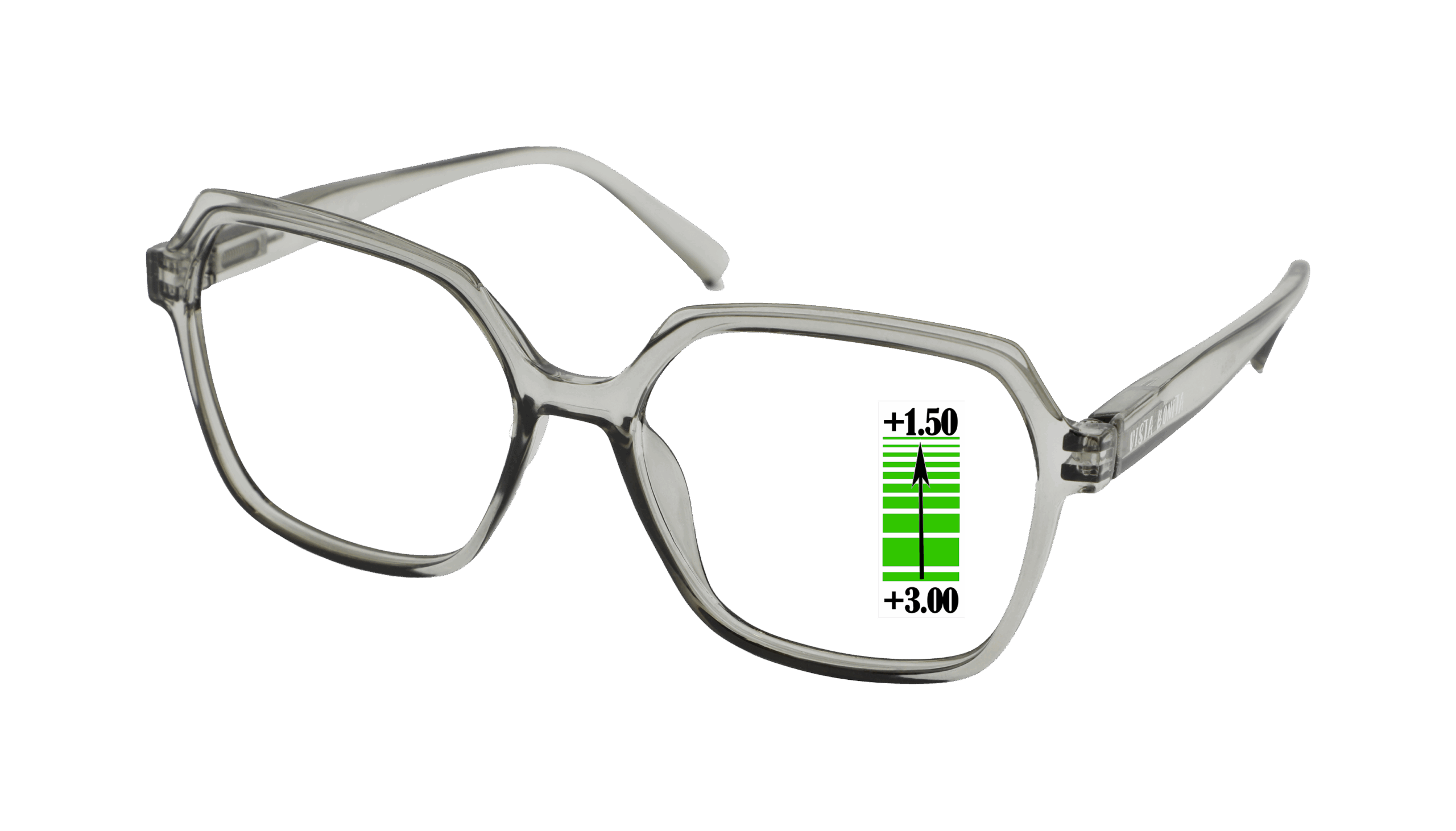 De MIRA multifocale leesbril combineert verschillende plussterktes in één glas, waarbij de sterkte geleidelijk