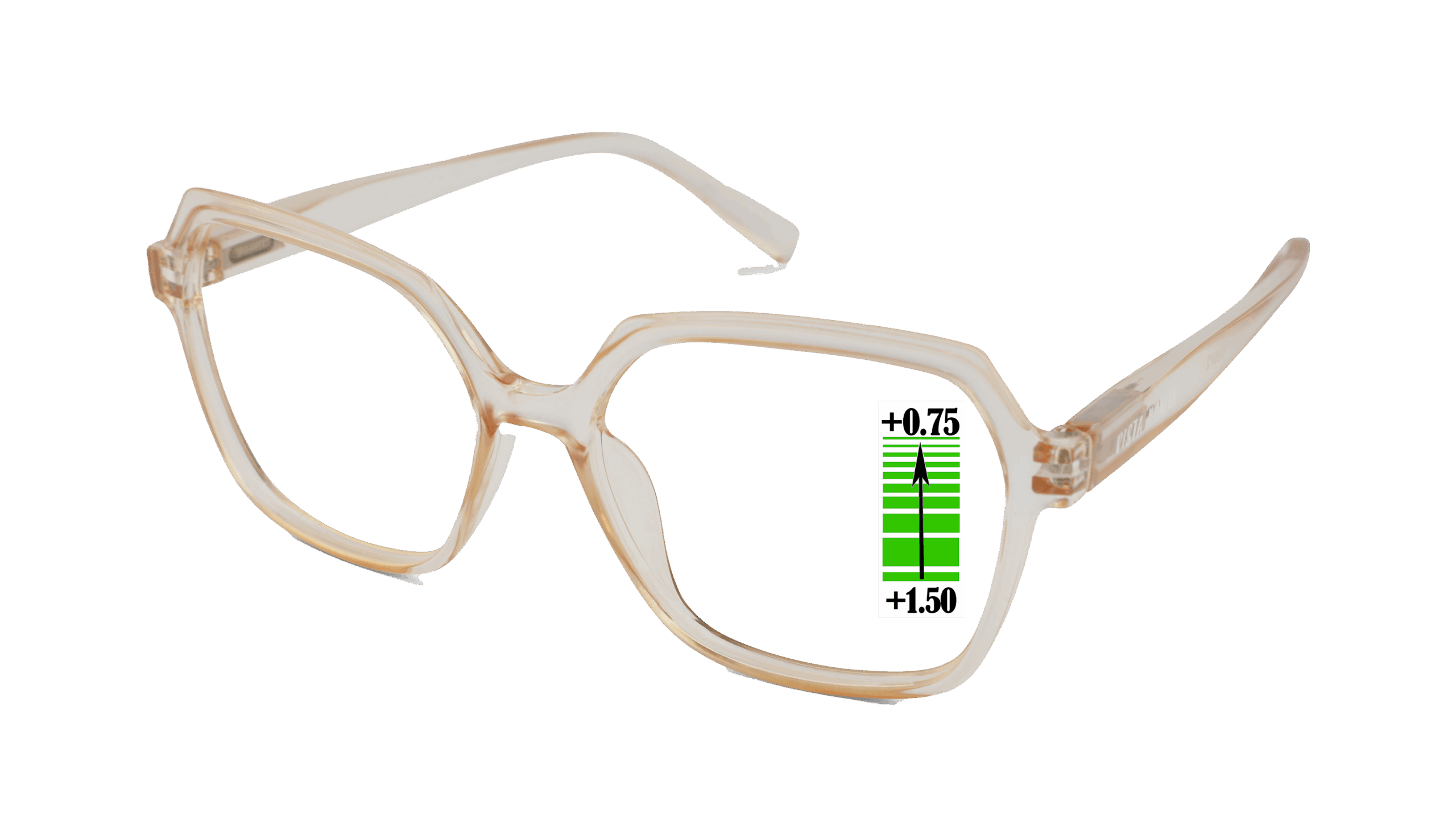 De MIRA multifocale leesbril combineert verschillende plussterktes in één glas, waarbij de sterkte geleidelijk