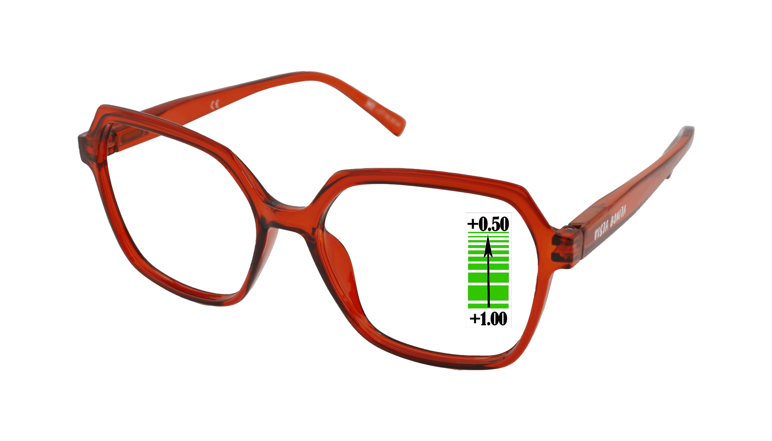 De MIRA multifocale leesbril combineert verschillende plussterktes in één glas, waarbij de sterkte geleidelijk