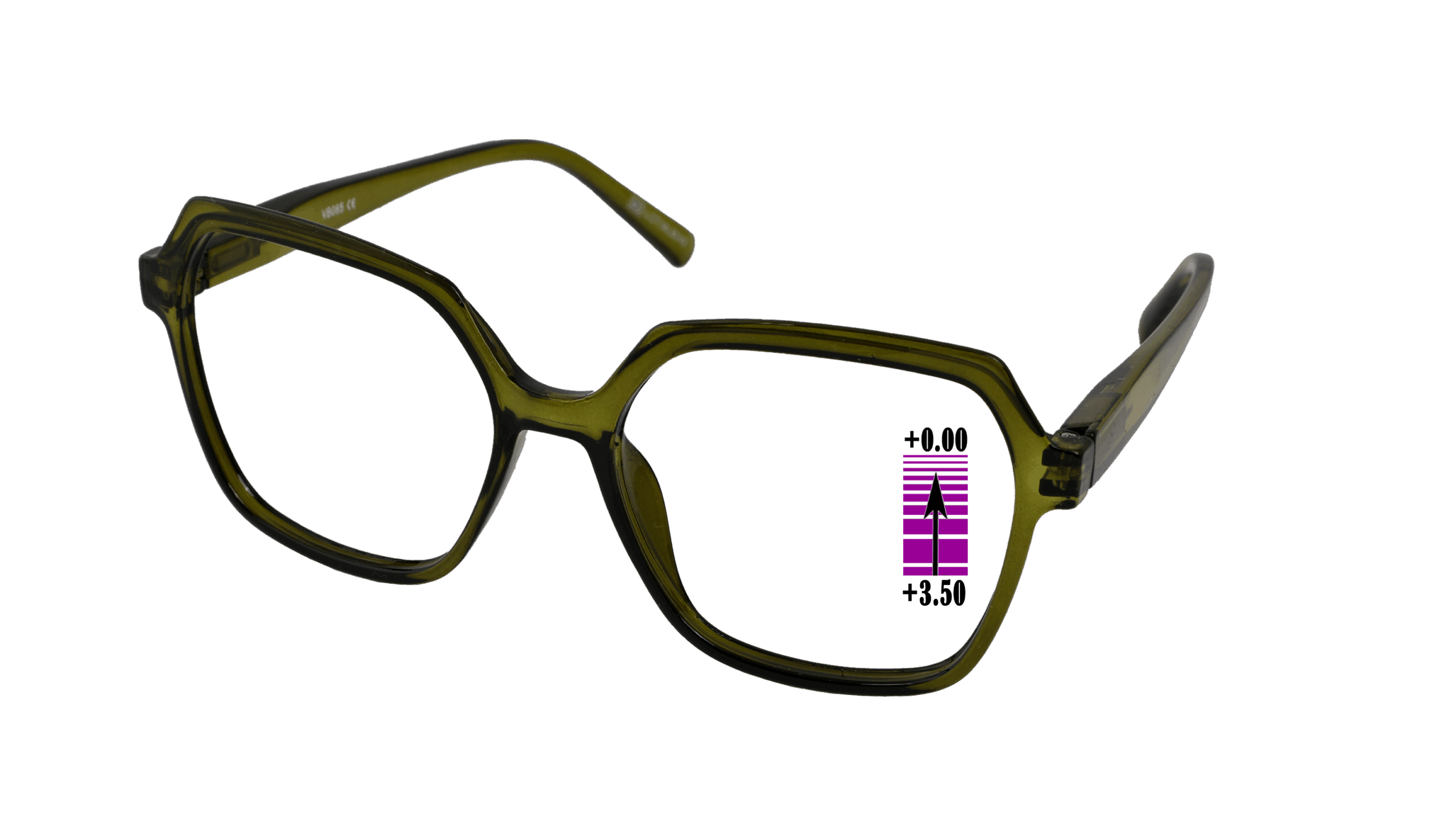 Het kunststof montuur is stevig, van hoogwaardige kwaliteit en zit comfortabel op de neus. De afwerking met flexveren zorgt voor extra draagcomfort en voorkomt dat de veren snel breken. Deze progressieve leesbril heeft bovenaan glazen zonder sterkte, zodat je veraf scherp ziet, en een onderste leesgedeelte met de gekozen sterkte voor dichtbij.