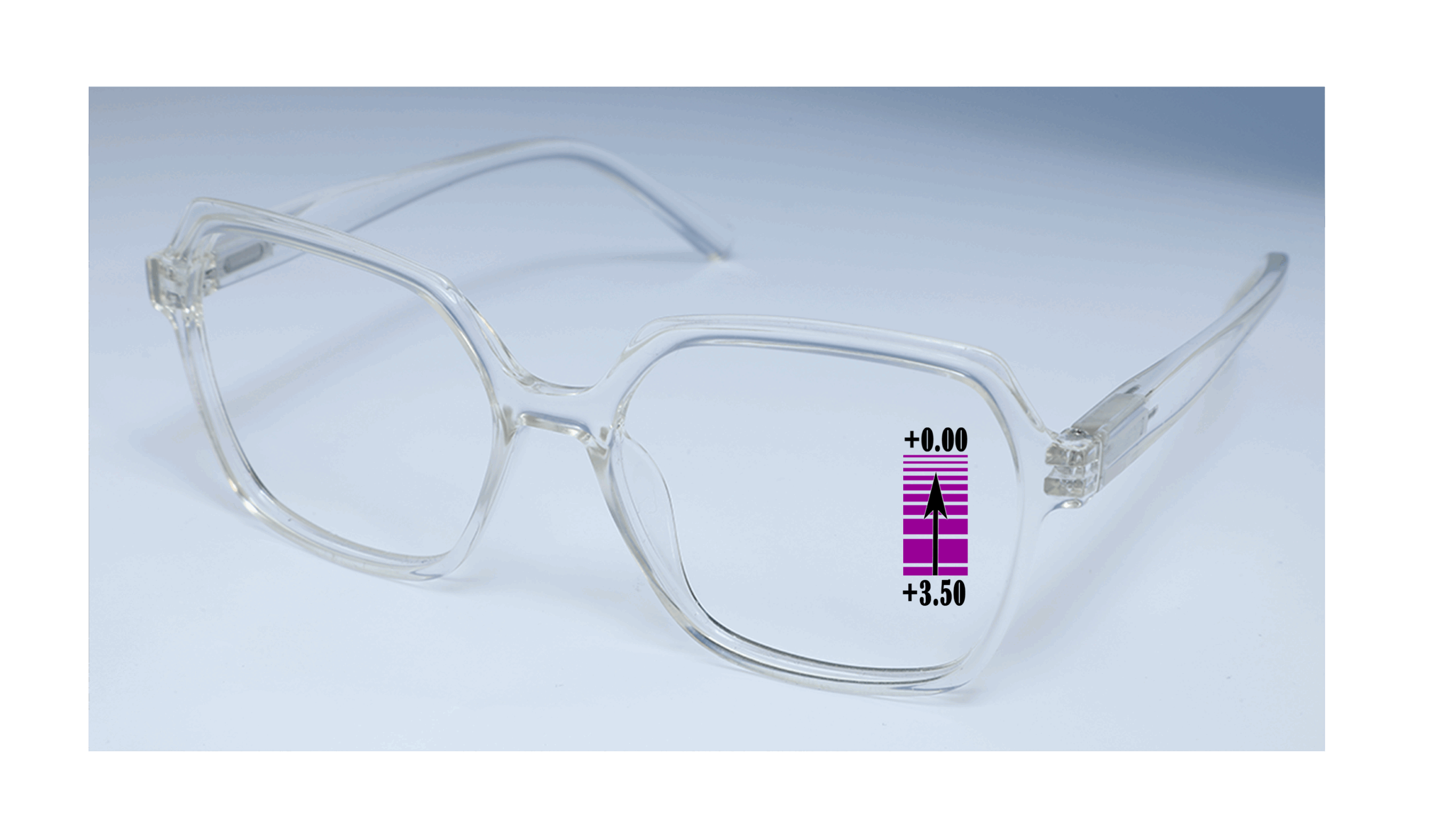 Het kunststof montuur is stevig, van hoogwaardige kwaliteit en zit comfortabel op de neus. De afwerking met flexveren zorgt voor extra draagcomfort en voorkomt dat de veren snel breken. Deze progressieve leesbril heeft bovenaan glazen zonder sterkte, zodat je veraf scherp ziet, en een onderste leesgedeelte met de gekozen sterkte voor dichtbij.