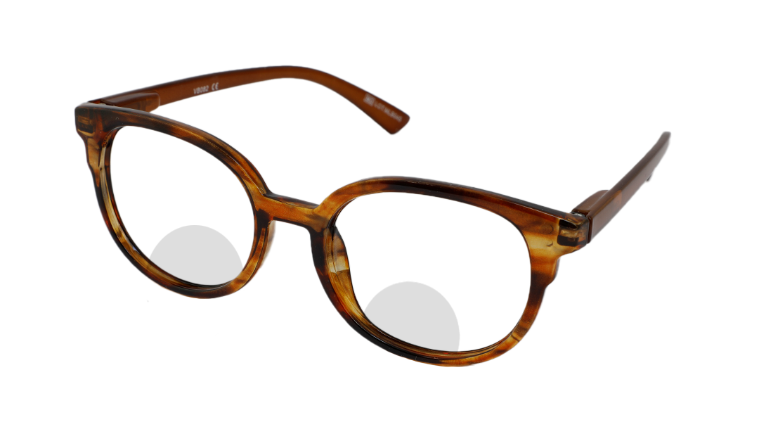 Een bifocale leesbril bevat alleen onderaan het glas een leesgedeelte/-maantjes terwijl de rest van het glas geen sterkte heeft. Zo kan je makkelijk van je af kijken.