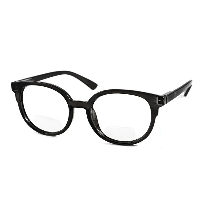 Een bifocale leesbril bevat alleen onderaan het glas een leesgedeelte/-maantjes terwijl de rest van het glas geen sterkte heeft. Zo kan je makkelijk van je af kijken.