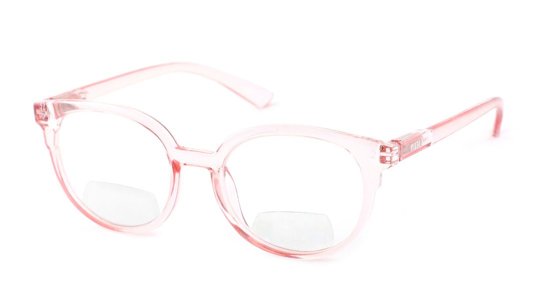 Een bifocale leesbril bevat alleen onderaan het glas een leesgedeelte/-maantjes terwijl de rest van het glas geen sterkte heeft. Zo kan je makkelijk van je af kijken.