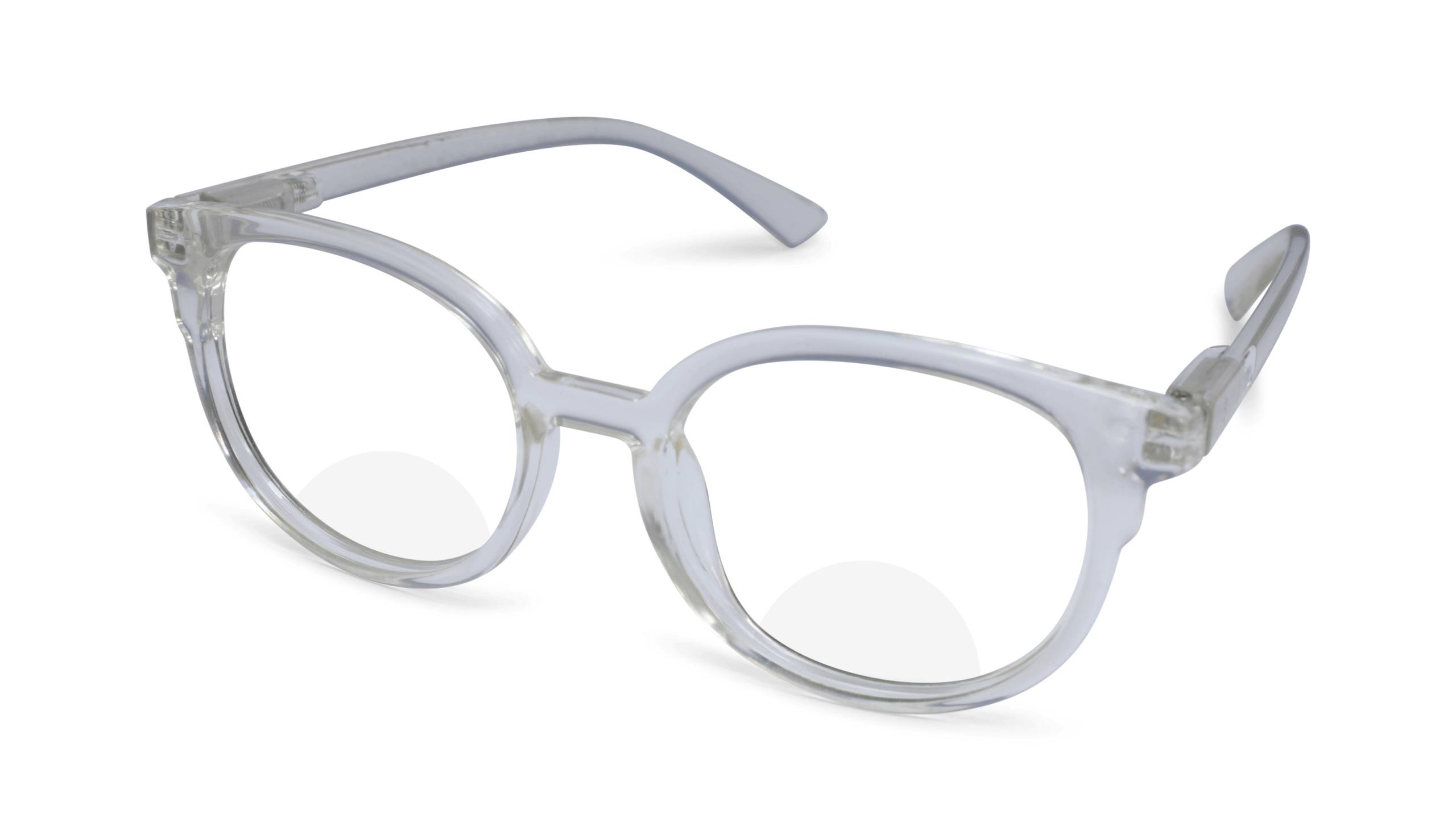 Een bifocale leesbril bevat alleen onderaan het glas een leesgedeelte/-maantjes terwijl de rest van het glas geen sterkte heeft. Zo kan je makkelijk van je af kijken.