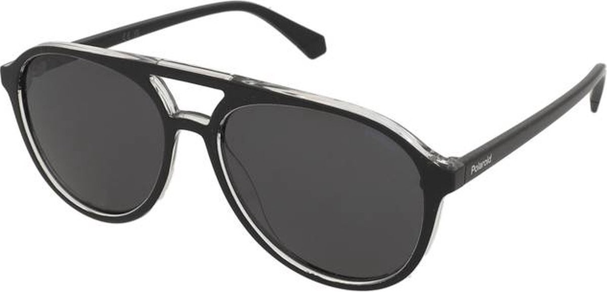 De Polaroid PLD 4162/S 7C5/M9 is een stijlvolle uniseks leeszonnebril die de klassieke pilotenstijl combineert met moderne functionaliteit. Het montuur is uitgevoerd in een elegante combinatie van zwart en transparant