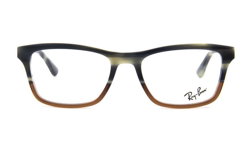 Dit is een stoere leesbril met vierkante vormen. Het is lastig de kleur van het montuur precies te beschrijven, omdat Ray-Ban gebruikgemaakt heeft van een techniek waarbij verschillende kleuren door middel van laagjes te zien zijn. Aan de bovenkant is de kleur het best te omschrijven als donkerblauw, de onderkant is van transparant bruin acetaat. Deze Ray-Ban leesbril is daardoor speels op een volwassen manier.