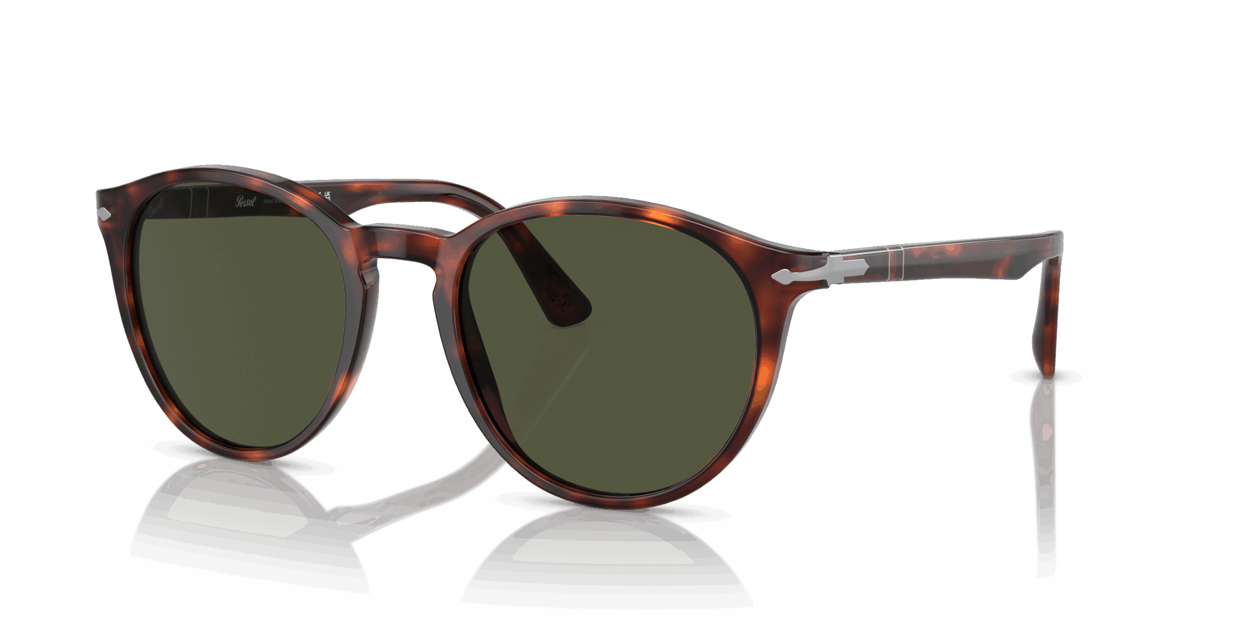 De Persol PO3152S zonnebril is een perfecte combinatie van Italiaans vakmanschap en tijdloos design. Dit unisex-model heeft een stijlvol panto-vormig montuur, gemaakt van hoogwaardig acetaat in de kleur ‘Havana Green’. De groene glazen zijn van kristal en bieden 100% UV-bescherming. Kenmerkend voor deze bril zijn de iconische zilveren pijl op de scharnieren en het Meflecto-systeem, dat zorgt voor flexibiliteit en een